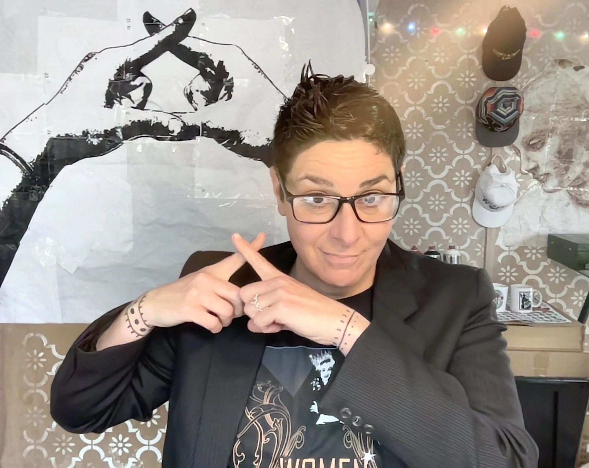Angela C. Wild is a political artist, lesbian feminist activist and writer. Her work focuses on promoting lesbian visibility and culture, defending women-only spaces, and challenging compulsory heterosexuality. She is a former founding member of Get The L Out and the author of Lesbians at Ground Zero — the first research on the ‘cotton ceiling’. She is the creator of Wild Womyn Workshop, a shop for radical feminist activists. She lives and works in Wales.
