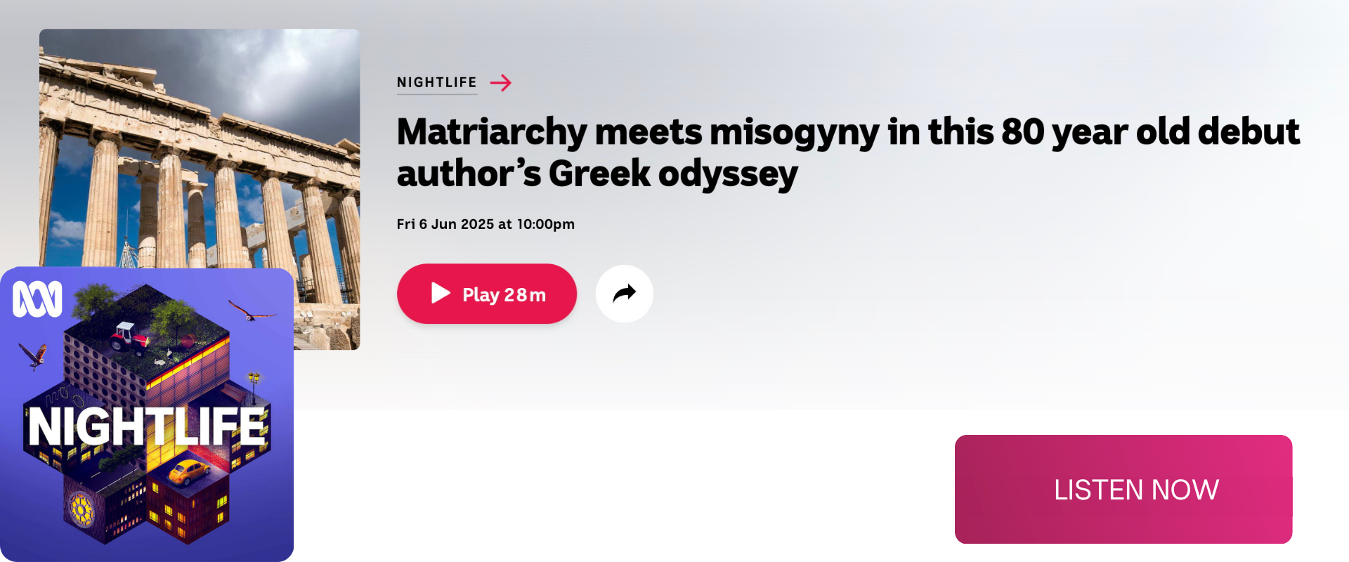 Coleen Clare talked to ABC Nightlife with Suzanne Hill about her book Minoan Footsteps. You can listen to it here.