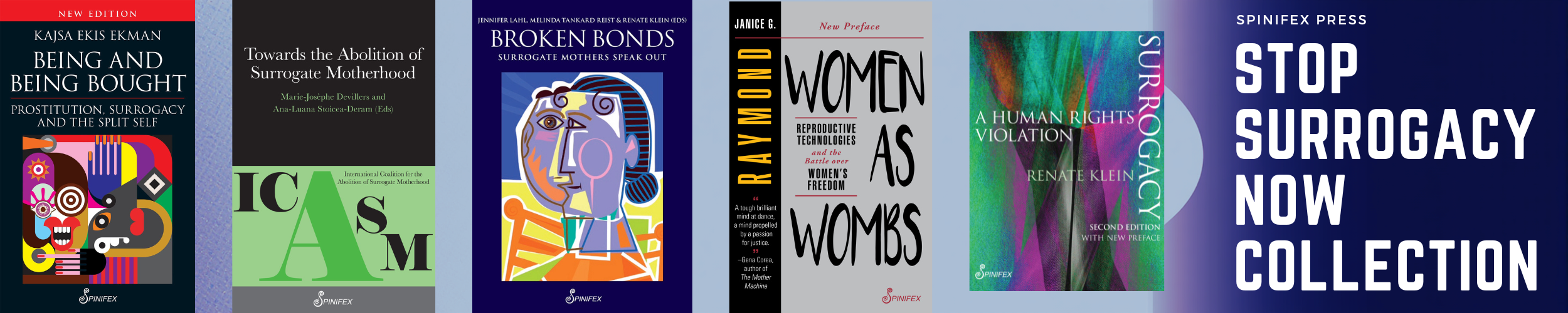 Klein's easily-read, yet exactingly learned 200-plus-page paperback covers the surrogacy journey from pre-placement to delivery, continually decrying the unethical, dangerous, damaging and uncertain aspects of this 'baby trade', recently estimated by the World Health Organisation to net several tens of millions of US dollars for fertility clinics, 'baby brokers' who match intending parents with surrogate agencies, and those surrogate agencies.